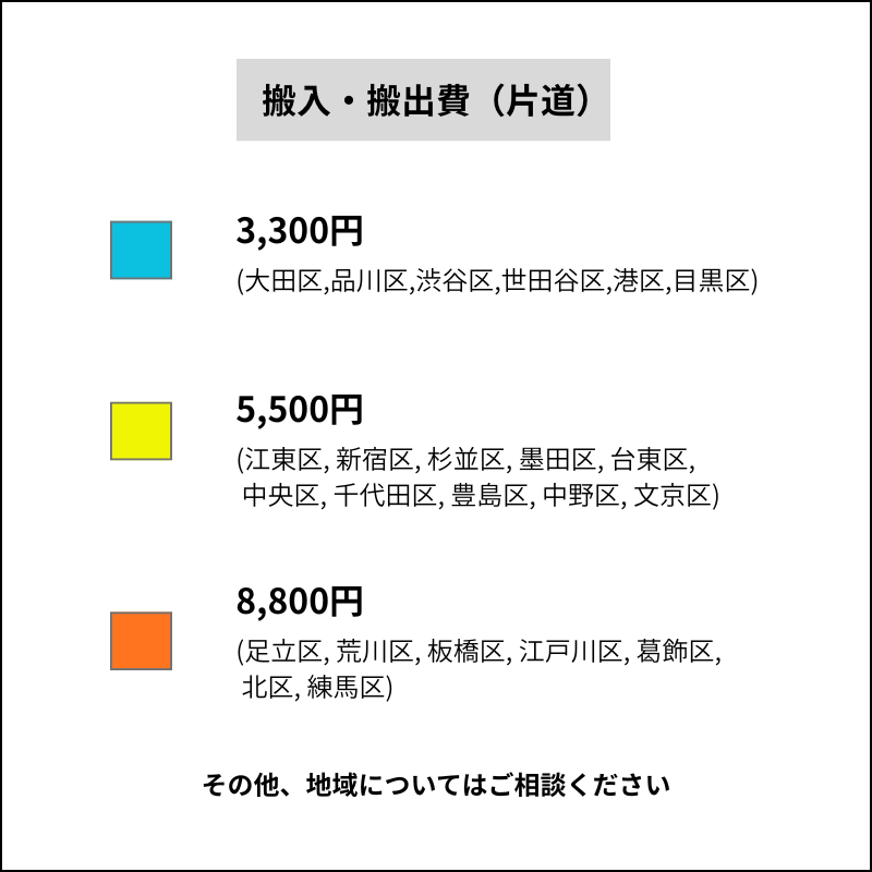 • 搬入・搬出費:3,300円+3,300円=6,600円